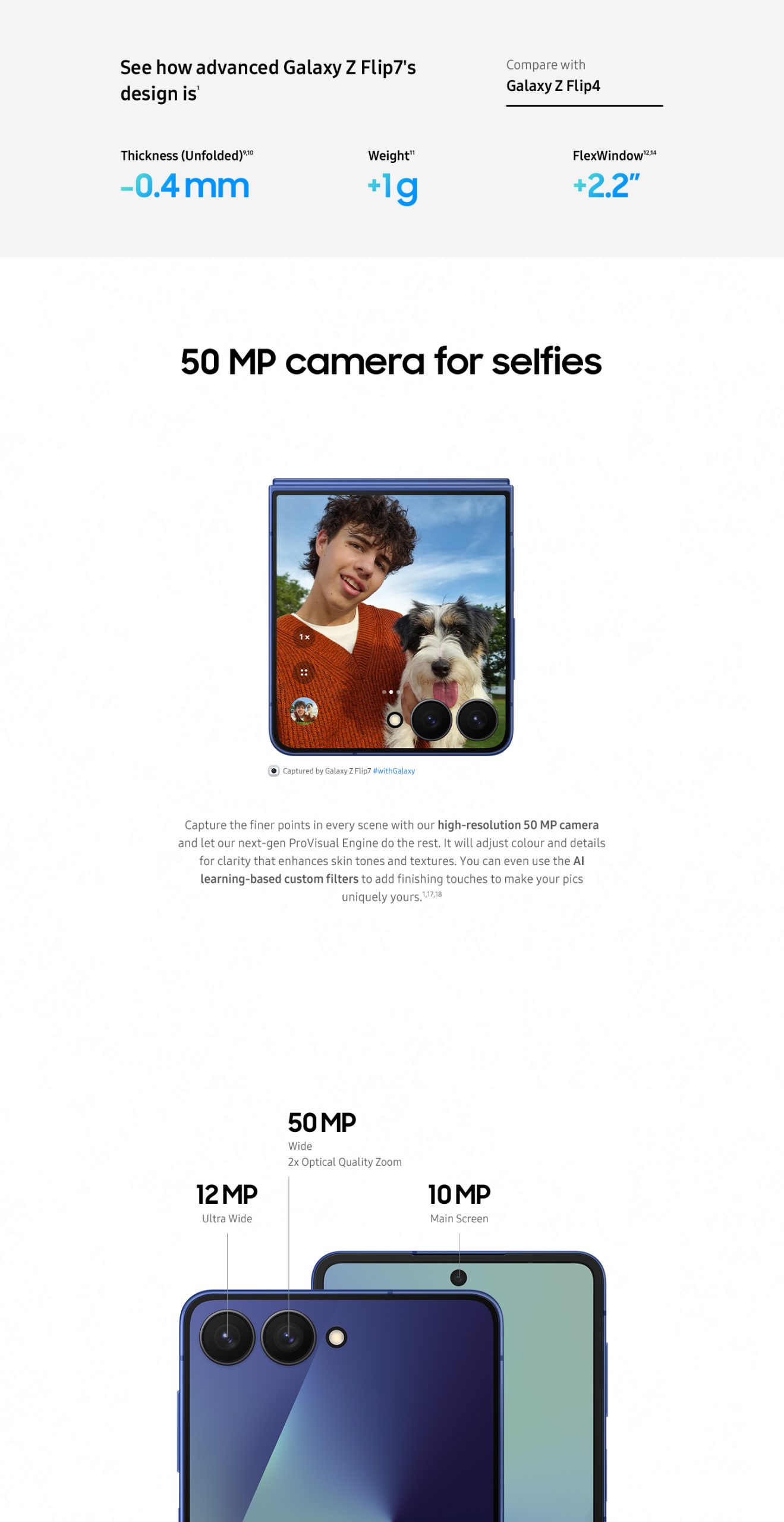 Front Camera : 10MP, F2.2 Rear Camera : 12 MP, F2.2 (Ultra wide) 50MP, F1.8 (Wide) |