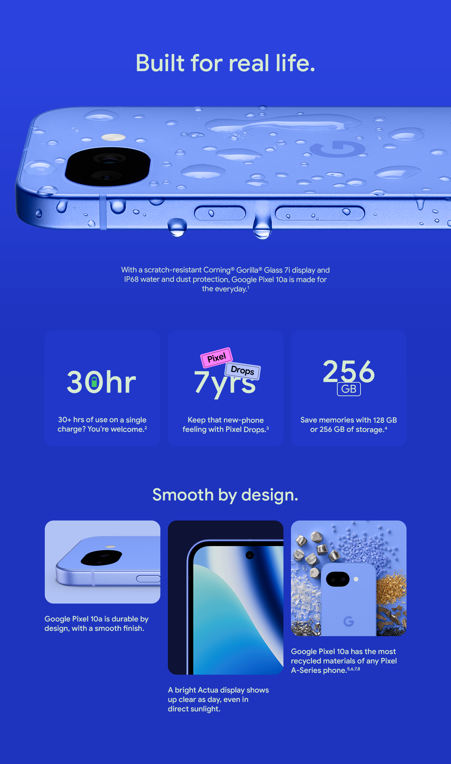 | Pixel 10a, 1 m USB-C® to USB-C® cable (USB 2.0), SIM tool |