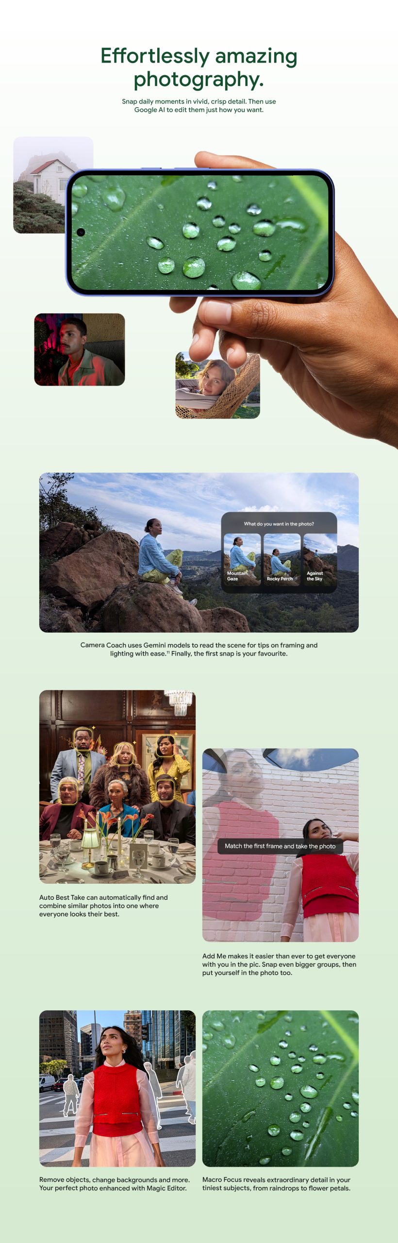 | Front Camera : 13 MP selfie camera ƒ/2.2 aperture 96.1° ultrawide field of view Rear Camera : Dual rear camera system: 48 MP wide | 13 MP ultrawide | Super Res Zoom up to 8x and optical quality at 0.5, 1x |