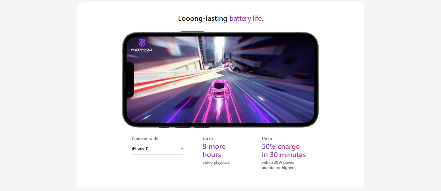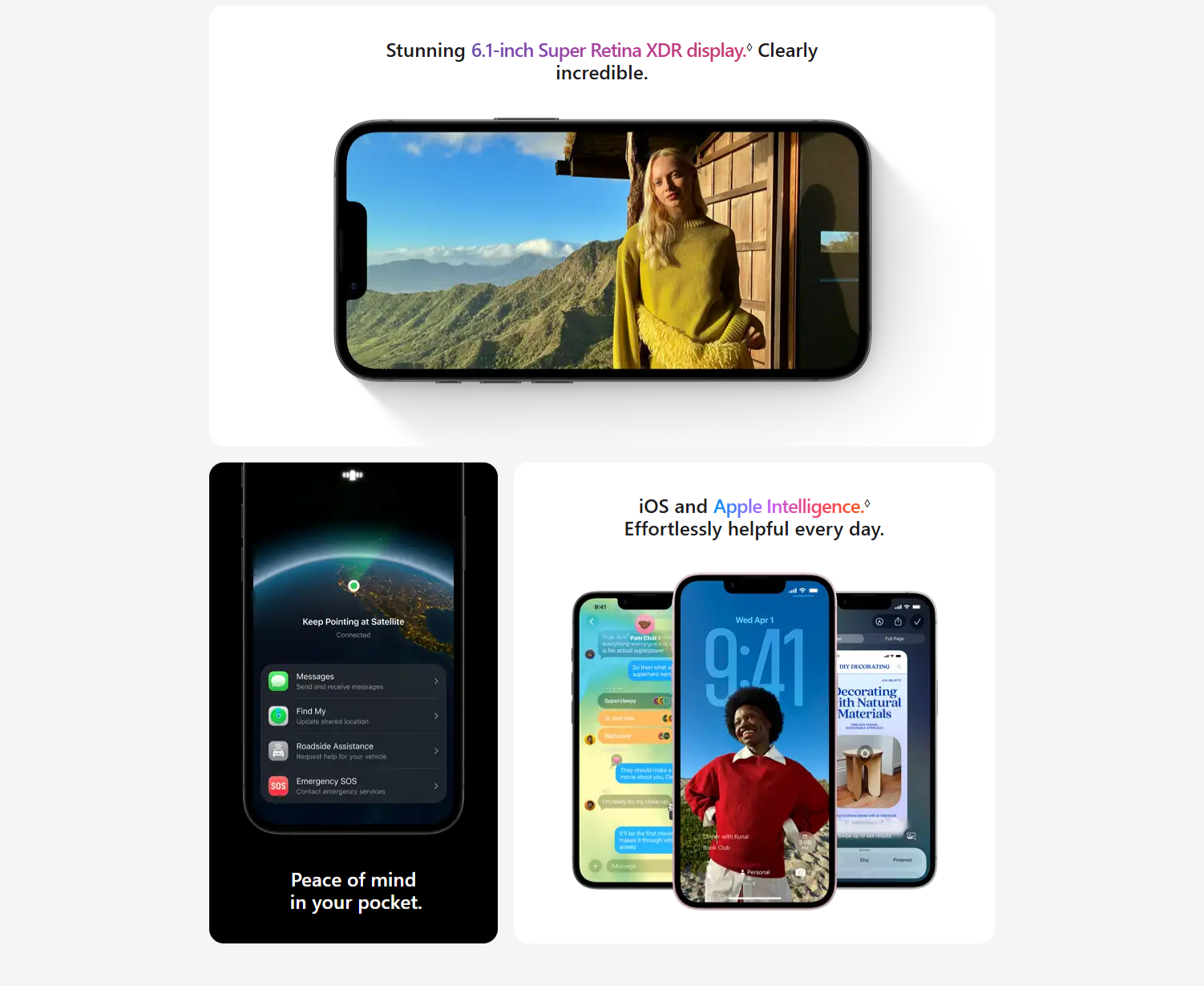 | Super Retina XDR display, 6.1‑inch (diagonal) all‑screen OLED display, 2532‑by‑1170-pixel resolution at 460 ppi |