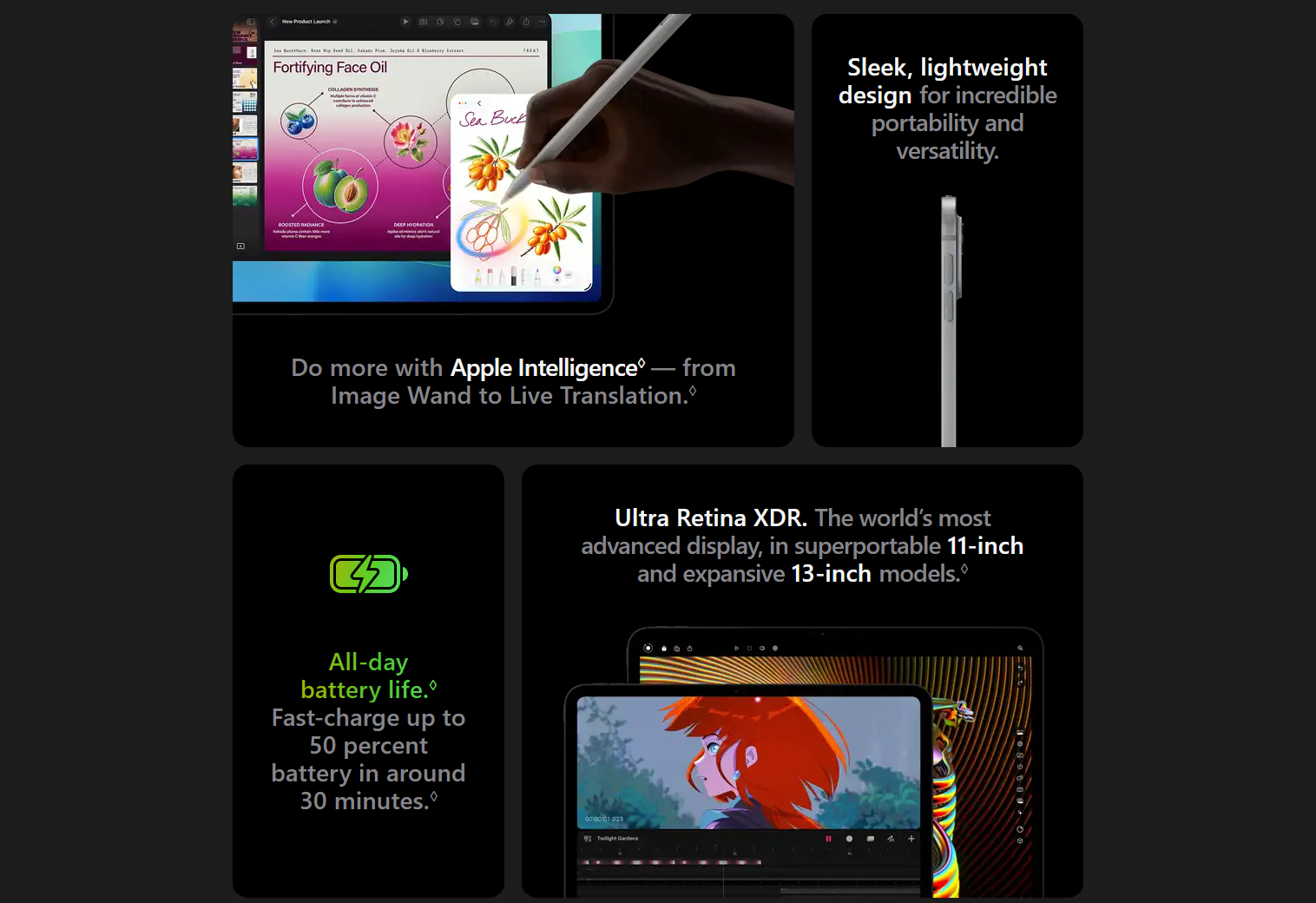 | 11” Ultra Retina XDR display, 2420-by-1668-pixel resolution at 264 ppi |